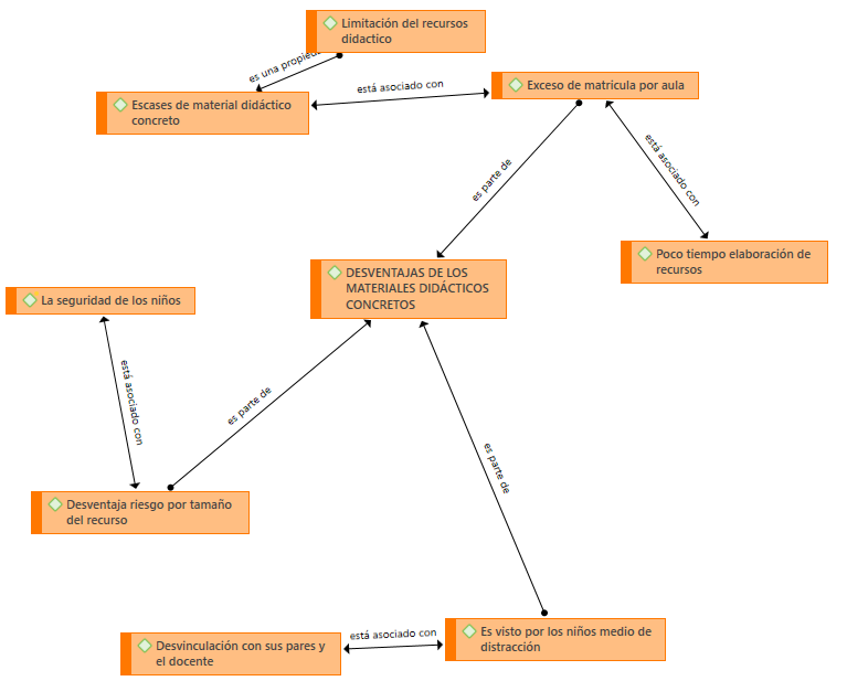 Siguiendo este orden de ideas, desde el desempeño profesional expresaron los informantes claves que existen desventajas en el seno de la utilización de los materiales didácticos concretos para el fortalecimiento de las nociones lógico matemáticas. En la cual expresan el tamaño del mismo, dado a que han ocurrido accidentes por el inadecuado control del docente cuando el niño o niña manipula, observa y explora los mismos. Aditivo a esto, se cree que sin la debida orientación pedagógica se transforman en un medio de distracción para los estudiantes, lo que va generando una desvinculación entre pares y docente. Además de ser asociado con un tema de la poca capacidad del ente rector en propiciar los mismos en el espacio educativo. Dicha limitación está asociada al exceso de matrícula estudiantil, que impide que todos los niños tengan acceso a los materiales didácticos concretos y hace que el docente se vea en la responsabilidad de elaborarlos, asunto que no es viable por el factor tiempo en el contexto educativo.