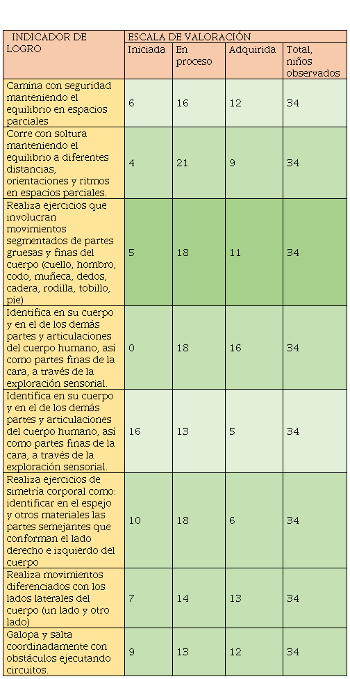 Identificados los referentes teóricos que sustentaron el desarrollo de la expresión corporal, se procedió a caracterizar el estado actual de los estudiantes mencionados a través del método empírico con la guía de observación donde los resultados obtenidos fueron reflejados en la siguientes tablas y figuras.