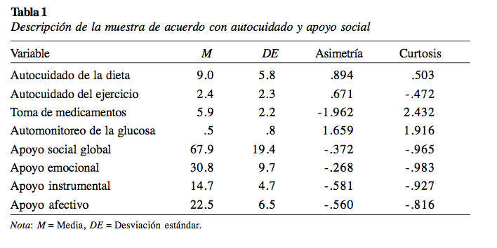 Palabras clave: autocuidado, apoyo social, diabetes mellitus, apoyo instrumental, dieta.
