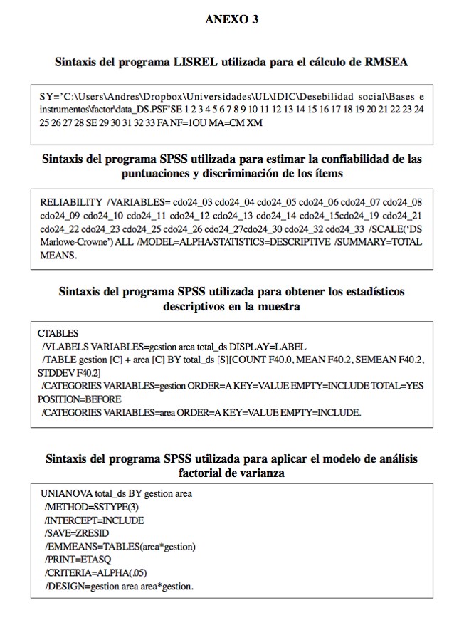 Para el desarrollo del estudio un grupo de 7 expertos, revisaron de forma independiente la versión original en inglés de Crowne y Marlowe (1960) y las versiones en español desarrolladas por Ferrando y Chico (2000) en España y por Cosentino y Castro (2008) y por Pérez et al. (2010) en Argentina, de manera que se integró la información y se realizaron las modificaciones pertinentes a fin de garantizar la adecuación lingüística del instrumento.