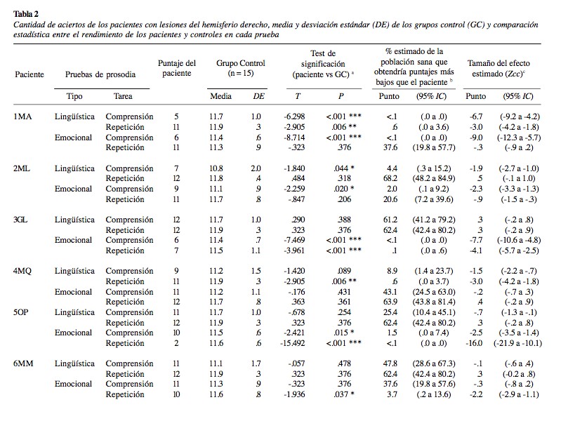 Disociaciones entre prosodia emocional y lingüística en pacientes con lesiones cerebrales del hemisferio derecho