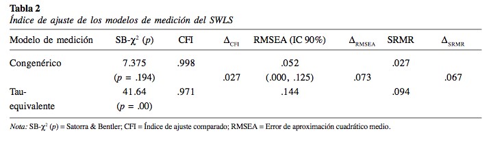 En población adulta, la vertiente de estudios psicométricos de la SWLS que analizan su estructura interna concluye que un solo factor es capaz de explicar la mayor proporción de variabilidad en países como Estados Unidos (Pavot & Diener, 1993), Alemania (Glaesmer et al., 2011), Turquía (Durak, Senol-Durak, & Gencoz, 2010), Malasia (Swami & Chamorro-Premuzic, 2009), Brasil (Gouveia, Milfont, Fonseca, & Coelho, 2009), China (Bai, Wu, Zheng, & Ren, 2011), Angola (Sancho, Galiana, Gutierrez, Francisco, & Tomás, 2012) y España (Atienza, Pons, Balaguer, & García-Merita 2000; Vázquez et al., 2013). En relación a la examinación de los ítems, los hallazgos obtenidos resaltan la presencia de errores correlacionados entre los ítems uno y dos (Sachs, 2004) y los ítems cuatro y cinco (Clench-Aas, Bang, Steffen, & Edvard, 2011; Jovanoviæ, 2016; Moksnes, Løhre, Byrne, & Haugan, 2014). Respecto a su invarianza, no existe evidencia concluyente respecto a las diferencias de género (Atienza, Balaguer, & García-Merita, 2003; Glaesmer et al., 2011; Wu & Yao, 2006), aunque sí sobre la edad y la cultura (Emerson, Guhn, & Gadermann, 2017).