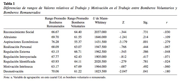 Diferencias en Valores Relativos al Trabajo y Motivación en el Trabajo entre Bomberos Voluntarios y Bomberos Remunerados