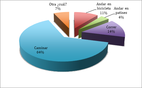 Como es posible reconocer, la diversidad de opciones presentes en el cuadro, permite identificar algunas de las marcas que caracterizan lo diverso, diferente, incluso desigual en cuanto a lo que hace físicamente un habitante en la conurbación, desde aquellos que practican un deporte formal, como quienes han tomado por suya una práctica emergente en la conurbación: la Zumba, un baile que ha pasado a ser una suerte de dispositivo que va de lo lúdico gozoso al acondicionamiento de bajo impacto, actividad fácil de observar por las mañanas o al caer la tarde, cuando mujeres y hombres se dejan atrapar por un baile que forma parte del programa de acondicionamiento físico que impulsaran los ayuntamientos de Veracruz, Boca del Río y Medellín, pero que hoy muchos grupos administran. En la gráfica siguiente puede identificarse que la opción “Ir a la Zumba” con 27% ocupa el primer como una actividad novedosa que se práctica por parte de quienes habitan en esta conurbación, con un 18% “Ir al gimnasio” y con 17% “Ir al casino”. Ese 24% de otras actividades, van desde quienes aseguran ir a las canchas de futbol para ver o practicar este deporte, a quienes prefieren asistir a clases de Pool dance o incluso a alguna academia de baile para aprender a bailar salsa o practicar danza.