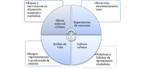 En esta perspectiva, el paisaje urbano en las sociedades modernas se configura a partir de variables o elementos que impactan en el diseño de su imagen: infraestructura, servicios, ofertas culturales, lo mismo que a partir de la apropiación que de los espacios realizan sus habitantes: un consumo cultural que se vincula a las experiencias de entretenimiento, ocio y disfrute del tiempo libre. De esta forma, las metrópolis o ciudades medianas, tienen una configuración de urbanidad que se alimenta de cómo se planean, cómo se desarrollan, cómo se administran, tanto como de las maneras en que prácticas y hábitos ciudadanos recrean una vida cotidiana que deviene relatos y estilos de vida urbanos que se observan en cualquier urbe; experiencias individualizadas o colectivas entreveradas por lo que las ciudades ofrecen como posibilidad a quienes en ella habitan.