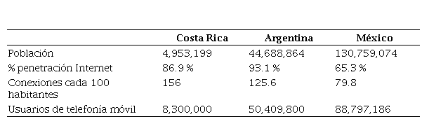 Los tres países de América Latina fueron seleccionados por presentar indicadores altos de penetración de Internet en su área.