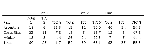 Lo primero que se puede observar es que la presencia de TICs en los tres planes de gobierno abierto se ha sostenido entre 40% y 60%. En el primer plan de acción hay un porcentaje de compromisos relacionados con la producción de TICs que se encuentran entre 30% y 50%. En el segundo plan de acción, Argentina y México tienen un incremento de presencia de tecnologías que supera 80% de compromisos, sin embargo, Costa Rica tiene una disminución de 17%; en su lugar hay más compromisos relacionados con la creación o fortalecimiento de normativa y legislación entorno a la transparencia, el acceso a la información, la lucha contra la corrupción y apertura de datos.