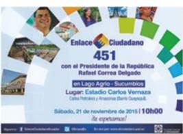 Secretaría Nacional de Comunicación. (2015). Enlace ciudadano 451 [composición fotográfica]. Recuperada de: https://www.ecuadornoticias.com/2015/11/enlace-ciudadano-451-desde-lago-agrio.html