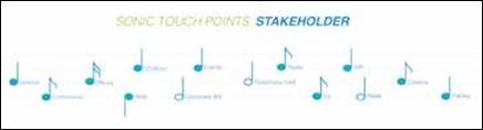 Uno de los escritores más respetados sobre este tema es Daniel Jackson, fundador de Sonic Brand, la primera agencia de Audio Branding del Reino Unido y CEO de CORD "Connect With Music". Jackson indica define nuestro concepto como “la creación de expresiones de marca en sonidos y el consecuente uso estratégico de estas propiedades a través de touch points” (2003, p. 9). Los “Touch Points” operarían como los nuevos puntos potenciales de convergencia donde los consumidores estarían en contacto con nuestra marca por medio del sonido (Figura 1).