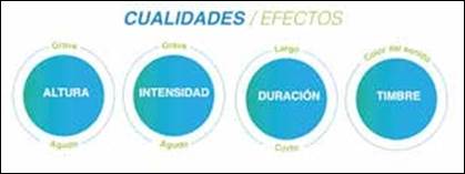 Por otro lado, Manuel Gertrudix Barrio (2003, p. 63) reafirma los conceptos de las cualidades básicas del sonido: “Cuando recibimos las ondas sonoras, percibimos simultáneamente las cuatro cualidades fundamentales que determinan un sonido: la intensidad, altura o tono, timbre y duración”