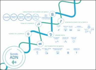 Es la creación sistemática de un lenguaje de audio completo para la marca en función de su esencia, visión, valores, promesas y personalidad, un lenguaje que es expresado en cada punto que su marca, la cual interactúa con sus componentes clave, desde la web y las aplicaciones hasta las ferias y reuniones de negocios, la televisión, el entorno minorista e incluso el producto en sí (p. 12).
