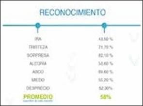 Hallazgo Reconocimiento. En la consulta sobre el tipo específico de emoción que le transmitía el tono, se pudo observar que en el 58% de los casos fueron capaces de identificar la emoción con exactitud. (Tabla 4).