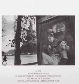 ABSTRACT: This article explores and examines the photoliterary series Gradiva, by Victor Burgin (1982). In Gradiva this artist and theoretician of the image reflects on the cultural assumptions that limit the language and the expressive possibilities of two principal media: photography and cinema. Through the story of Wilhelm Jensen's novel Gradiva. A Pompeian Fantasy (1903), Burgin combines his interest in Psychoanalysis and his work as a philosopher of communication media. The iconology of the heroine Gradiva is enriched by the possibilities for distinct readings that arise through the use of rebus as an expressive instrument in the work of Burgin.