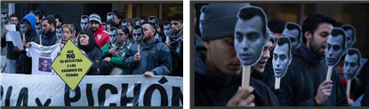 En tercer lugar, tales particularidades implican operaciones divergentes de individualización/universalización del colectivo manifestante. Revisando esta genealogía reconocimos dos caminos posibles a la hora de señalar la violencia y falta de justicia. A partir de la desindividualización, las máscaras blancas permiten construir un colectivo, un conjunto compuesto por casos dispersos y dispares, que pueden “imaginarse”, volverse imagen en las calles y plazas, diluyendo las particularidades en una causa común. Por el contrario, la singularidad de los rostros de los jóvenes asesinados delinea otro itinerario que circula desde la individualización a la universalización. Al ser portados por todos los manifestantes, en un gesto igualador, se pretende ya no sólo colectivizar el reclamo sino volver a esos jóvenes parte integrante del cuerpo social, atentando contra la jerarquía que organiza la importancia de las vidas y las muertes.