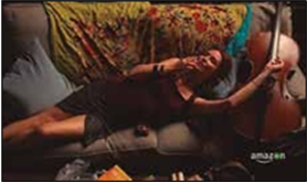 Para ejemplificar lo que acabamos de señalar, comentaremos una secuencia del primer capítulo de la primera temporada, en la que Hailey es aconsejada e instruida por la curtida violonchelista Cynthia (Saffron Burrows) quien la introduce en la filarmónica, y que será su guía a través de los entresijos del gremio de la considerada élite musical. Será quien le aconseje y la proteja contra las envidias y rivalidades de otras artistas. A través de ella se muestran gran parte de los aspectos que justifican el subtítulo de la serie. Cynthia es una mujer independiente, madura, muy atractiva y seductora que tiene un comportamiento sexual totalmente libre. Es amada y respetada por todos, se preocupa por apoyar y escuchar a sus compañeros, de hecho es la representante sindical de la orquesta, pero, por otro lado, es un personaje misterioso que esconde muchas cosas, como su romance con un hombre casado, el maestro Thomas, o que debido a la artrosis consume todo tipo de drogas para soportar el dolor y poder seguir tocando (Figura 2). Es también por Cynthia que se descubre que entre los músicos hay un anciano fumador de marihuana, que suministra ilegalmente todo tipo de sustancias al resto de sus compañeros.