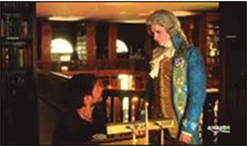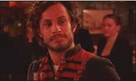 También es revelador el título que puede interpretarse de dos maneras. Por un lado, Mozart, puede identificarse con el protagonista, Rodrigo (Gael García Bernal) el director de la orquesta (Figura 5), quien para reforzar este vínculo mantiene diálogos esquizofrénicos con apariciones de grandes músicos clásicos, en especial con Mozart (Figura 6). El hecho de que Mozart, (uno de los mayores símbolos de la genialidad artística musical), se encuentre en la jungla, supone que no se encuentra en su medio, que se haya rodeado de peligros desconocidos para él, en la vorágine de un mundo sin civilizar, con fieras que le pueden atacar y ante las que está indefenso. Esa jungla sería, no la orquesta, en la que ciertamente hay una voraz lucha de egos, sino más bien el mundo de la industria musical y del espectáculo, donde un artista se encuentra desamparado.