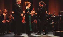 En medio de este vaivén apasionado Rodrigo consigue, en un arrebato de amor, que Ana María acceda a tocar con él como solista de violín con la filarmónica, en el concierto inaugural de la temporada. Después de unos ensayos horribles con tremendas peleas entre ambos en las que Rodrigo debe apelar a los sentimientos de ella y rogarle continuamente (Figura 11) llega el día del estreno. La sala está a rebosar, es la inauguración de la temporada y ella aparece con Rodrigo vestida con elegancia y aparentemente radiante de alegría. La reconciliación definitiva parece inminente. Se han besado antes de empezar, y todo apunta a que va a ser un éxito, pero al inicio del concierto, cuando Ana María mantiene al público y a la propia orquesta embelesados mientras baila al tiempo que realiza un espléndido solo de violín, (Figura 12) de pronto se detiene furiosa: