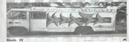 Dos días después de documentar la intervención de Jupi en San Juan de Ocotán, el 24 de febrero, asistí a su casa ubicada al oriente de la ciudad. En el recorrido me había comentado que tenía varias revistas en las que salían publicadas sus piezas y las de otros escritores que había mencionado, por lo que fui a su casa a digitalizarlas. Me sorprendió mucho ver los registros de camiones de pasajeros urbanos, camiones de carga y automóviles marcados con tags, bombas y piezas en la revista Arte y Destrucción (2002), incluso una de las bombas publicadas era de “Jupi” (PX) en la caja de un transporte de carga. Los camiones fueron fotografiados en circulación, lo que significa que en la primera década del dos mil y a la par de la inclusión de las bombas en el repertorio de los writers tapatíos, conocida como la “revolution bomber”, tuvo que existir un circuito de graffiti de la tradición neoyorquina entre escritores de la AMG que tenía como soportes itinerantes: los camiones urbanos y otros vehículos motorizados (Figuras 15-19).