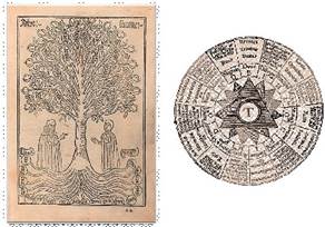 La representación de la ciencia de Occidente ha usado ciertas imágenes: el árbol, el stemma, las sefirots, los teatros de la memoria, entre otros. El árbol de Porfirio invirtió su jerarquía en Deleuze y Guattari, dejando de ser las ramas del conocimiento para que la raíz o bulbo se conviertan en una cartografía que describe la lógica esquizoide del capitalismo, posteriormente la idea de rizoma se ha interpretado como formas fractales y azarosas del universo de la información y/o del mundo digital. Existe otro árbol del conocimiento de Raimundo Llull, que es un sistema de lugares “en el que toda la enciclopedia del saber es esquematizada como un bosque árboles, cuyas raíces son la sucesión que va de B a K en calidad de principios y relata del arte” (Yates, 1966, 210). El Arbol Scientae estaba explicado en un sistema de diagramas arboriformes con ramas y hojas con fórmulas abstractas y clasificaciones, estableciendo correlación entre las sefirots, la escala del ser, la teoría de los humores, entre otros. El árbol consta de siete partes, divididas cada una en catorce, para ejemplificar todo lo implicado y lo explicado y lograr el conocimiento y entendimiento de la naturaleza y los hombres.