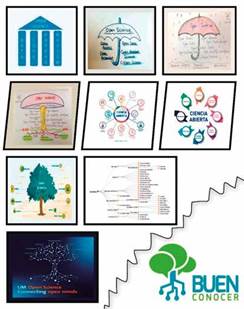 Todas estas representaciones de la Ciencia Abierta surgieron en como resultado de una discusión sobre la apertura del conocimiento que tomó la denominación de Ciencia Abierta a inicios del nuevo milenio. Como se observa en la Figura 9, las imágenes de este paradigma fueron evolucionando de pilares y esquemas radiales, a modelos jerárquicos y rizomáticos que sugieren la lógica binaria de los formatos digitales. Al margen de esa visión hegemónica, el Buen conocer incluyó los saberes ancestrales de América, considerados por UNESCO hasta su versión 2021.