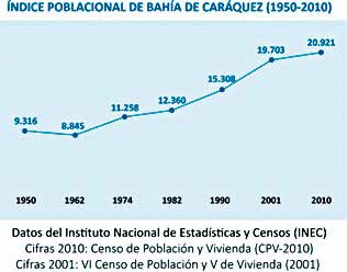 Según datos del censo obtenidos por el INEC en 2001, Bahía de Caráquez contaba con una población de 19.703 habitantes. En 2010, este instituto realizó otro censo, el cual reflejó un ligero incremento poblacional, llegando a los 20.921 habitantes (Figura 15). Sin embargo, Moreno relata que la iglesia de Bahía hizo un nuevo censo posterior al sismo de 2016 y reportó unos 3.800 habitantes. Asegura que este acontecimiento causó el mayor declive social de la historia de Bahía.