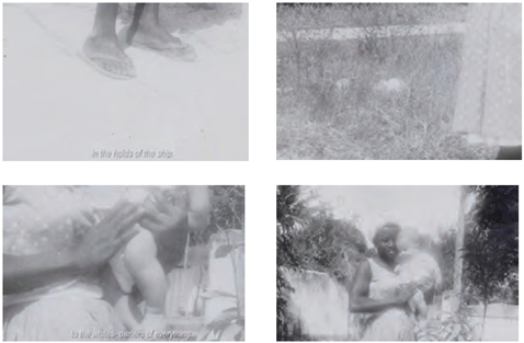O curta-metragem Travessia4 contém três sequências. Na primeira (Figura 1), a que abre o filme, vemos fragmentos de um corpo negro dispersos em uma fotografia. Pouco adiante entenderemos que se trata de uma imagem com a seguinte legenda: Tarcisinho e sua babá. Dias D’Ávila, 15-11-63, onde uma mulher negra segura um bebê branco.