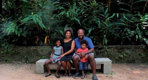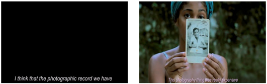 Enquanto ouvimos a voz de Angélica discorrer sobre as outras ocasiões em que se recorda de haver sido fotografada, a também realizadora negra Tuanny Medeiros aparece exibindo fotografias caseiras de outras famílias negras. Importante ressaltar que tanto a fotografia inicial do filme quanto as exibidas por Tuanny foram encontradas por Safira Moreira na feira da Glória6, no Rio de Janeiro, não fazendo parte, a princípio, da família de Moreira nem da de Medeiros.