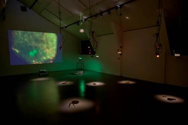 Este proyecto fue diseñado para el Musée universitaire de Louvain (Musée L, Bélgica), y muestra una serie de esculturas, proyección de video, obras de luz y sonido que emergen de las formas de las estructuras microscópicas de los hongos micorrízicos arbusculares (HMA). Los HMA están ampliamente distribuidos en el suelo, y son capaces de vivir en ambientes contaminados. La simbiosis entre HMA y raíces pueden ayudar a las plantas a establecerse, y posiblemente restaurar este tipo de ambientes. Por lo tanto, los HMA se presentan como una alternativa biológica que abre una puerta a la agricultura sostenible y la posible biorremediación de suelos. La influencia de esta simbiosis mutualista microscópica derivó en un acercamiento al imaginario de la ciencia ficción, para especular sobre nuevas formas de relaciones mutuas de las que como humanos podemos aprender (Figura 3).