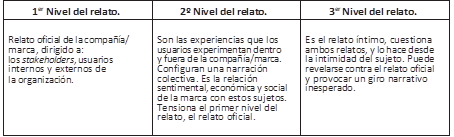 David Boje definió (en la década de los noventa del siglo pasado) a estas organizaciones con el nombre de organizational storytelling, lugares donde “se construye una narración colectiva, polifónica pero también disonante, constituida por fragmentos entrelazados, historias que se hablan, se intercambian, a veces se contradicen, y la empresa [institución] se convierte así en una organización narrativa cuyos relatos pueden ser escuchados, regulados y, claro está, controlados” (Salmon, 2008, 75). El control sobre el relato que Boje señala es difícil, ya que sobre el relato oficial y el colectivo también se escribe el íntimo. El sujeto alejado del colectivo e influenciado por ambos textos narrativos los comparte en su círculo familiar, donde se construye el tercer nivel del relato, que puede anteponerse a los dos primeros y convertirse en el predominante para el individuo. Sus necesidades y anhelos le pueden llevar a buscar otra narración con la que se sienta más identificado, económica y socialmente, lo que puede transformar el conflicto tenue en intenso o duro, pudiendo llegar al extremo de provocar una revuelta, lo que Christian Salmon define como un “giro narrativo” (2008, 75).