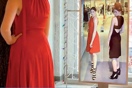 La conexión entre publicidad, diseño y relato es clara. Un vínculo que nos permite argumentar la relación entre la ficción y el mercado, siendo este último el depositario final del relato en el que la mercancía fluye. Si el cine fue “la gran fábrica de sueños”, en la actualidad la ficción mercantil es la gran fábrica de deseos de nuestra contemporaneidad. La transversalidad entre disciplinas como el cine, la moda, el diseño, la literatura y el arte en general ha permitido la eclosión (sobre todo desde la moda), de los estilos de vida (lifestyles). Estos se utilizan como modelos a replicar, mediante los cuales se recrean nuevas identidades mercantiles que sirven como modelo al usuario. El sujeto mercantil se refleja en ellas en modo especular y espectacular, siendo este artificio el que permite la renovación constante de las propuestas que el mercado construye. Lo que literalmente acontece, cuando nos situamos frente a los espejos inteligentes desarrollados por la compañía de realidad aumentada (ar) e inteligencia artificial (ai) MemoMi Labs Inc., con sede en Silicon Valley (Figura 3).