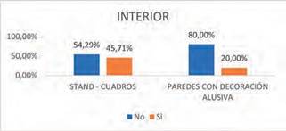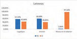 Respecto a la categoría de diseño interior, se ha considerado para el estudio en primer lugar la decoración cuyo resultado encontrado fue que en un 60%, no se encontraban letreros interiores y que, en aquellos locales en que existían letreros, un 57% no tenía el logotipo del local comercial (Figura 12). Sin embargo, habría que destacar que en muchos de los locales sí existían ornamentaciones relacionadas al restaurante, mientras que en unos pocos se destacaban las fotos de figuras famosas que alguna vez visitaron el lugar.