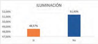 En cuanto a los valores de la variable iluminación, que son la percepción de la mercadería, la consideración de la luz directa, la luz tenue y la intensa. El interrogante en sí era saber si fueron considerados en los locales estudiados. Los resultados se muestran a continuación, demostrándose que sólo uno pocos lo hicieron versus el total de lo locales (Figura 19).