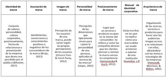 Cuando se involucran los servicios, la situación se vuelve más compleja, pues se tiene que estudiar y gestionar las características y el comportamiento de los que brindan servicios con el objetivo de dejar una buena percepción a los que viven la experiencia (Millman, 2011). En el libro Branding & Pyme, el autor Emilio LLopis (2011) consideraba y analizaba los siguientes conceptos básicos del branding (Figura 2).
