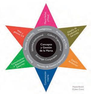 Cabe resaltar el modelo de construcción y gestión estratégica de la marca de Joan Costa (2012). Puede visualizarse en la Figura 3.