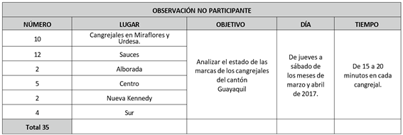 También se emplea la observación: percepción directa del objeto a investigar; en este caso, se observaron el nombre, los colores, las imágenes y los atributos utilizados por los cangrejales de la ciudad de Guayaquil. En la Figura 4 se muestra lo observado.