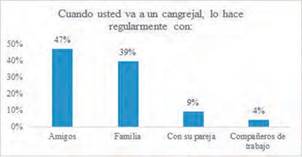 En la Figura 5, se puede observar que el 47% de los entrevistados prefieren asistir a un cangrejal con amigos, el 39% con familia, solo un 9% lo hace con su pareja y un 4% con compañeros de trabajo (Figura 6)
