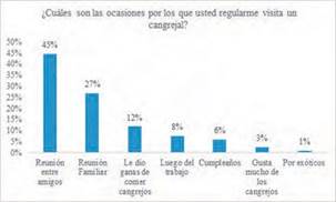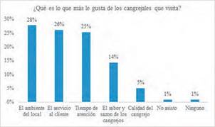 Se realizaron 137 encuestas, de las cuales 119 manifestaron ser consumidores de cangrejos con cierta regularidad, a continuación, parte de las preguntas y preferencias de los visitantes al momento de visitar cangrejales, lo mostrado sirve como base para definir la propuesta (Figura 5).