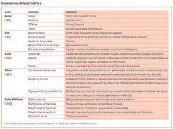 Para el desarrollo del análisis se aplicó lo expuesto en la revisión bibliográfica. Lo primero que se tuvo en cuenta fueron las dimensiones consideradas en el compendio de puntos a considerar para el diseño de una atmósfera, expuestos por las autoras Gómez y García (2012), y que abarca desde Kotler en 1973 hasta Turley y Maliman en el 2000 (Figura 9).