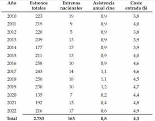 Cabe mencionar que, a más del bajo promedio de asistencias, apenas el 0.6 veces al año por persona, estaríamos sumando otra situación de riesgo como es el fenómeno de la piratería (Griselda Moreno & Luis Cifuentes, 2022).