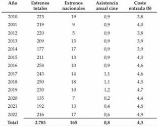 En el siguiente cuadro (Tabla 1) se observan datos cuantitativos, en relación a lo comentado anteriormente sobre la diferencia en el número de espectadores y taquilla de películas extranjeras en comparación con las películas iberoamericanas, en relación a los estrenos del top-100 en el año 2022.