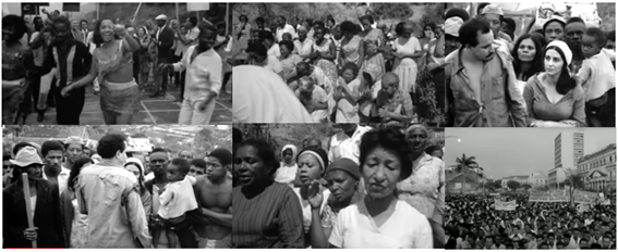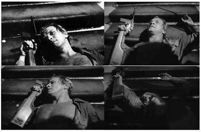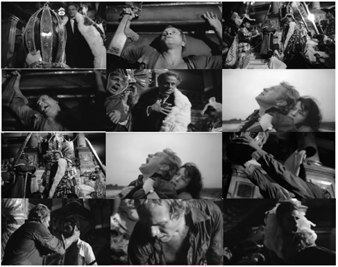 Terra em transe es una teoría desarrollada en imágenes. Cuando transgrede el formalismo del lenguaje, y crea técnicas disruptivas en el filme, está teorizando. Las imágenes que ofrece Rocha son muy claras, respecto al sentido estético en el montaje; son imágenes dadas al tiempo porque no tienen conclusión y no se deben a ninguna trama, son films abiertos a la potencia de las imágenes. Las imágenes se utilizan como dispositivos del pensamiento, que a través de diferentes instrumentaciones pertenecen a una instancia teórica y académica. En Terra em Transe no sólo hay una historia, una trama y una puesta en escena; aquí, el montaje es el eje central de la creación, en tanto les otorga a sus películas su carácter poético. Este carácter reside en el desplazamiento constante de imágenes que carecen de la estructura dramática aristotélica; tal fenómeno lo podemos observar en la Figura 2. Cada fotograma tiene fuerza propia, y se presentan a modo de flashazos que transcurren en segundos.