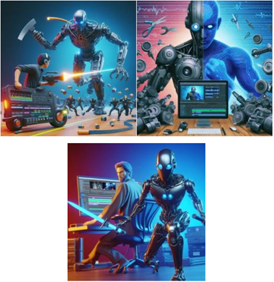 A medida que la AI continúa evolucionando, esta aumenta las capacidades de edición de mano del lado humano necesario para el uso de la misma. A su vez, la inteligencia artificial abre el campo a profesionales amateurs a indagar en formas distintas de edición con la facilidad que otorga la AI; esto es lo que ha generado discordia en el medio audiovisual, puesto que se considera la moralidad de los trabajos en torno al conocimiento empleado.