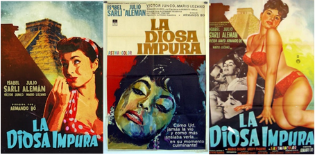 El vínculo con México es fundamental para examinar la estructura narrativa y genérica de una película que incursiona en el melodrama a partir de una síntesis entre los modelos que este género adquiere en el país azteca y en la Argentina. Seguramente, el guionista argentino Alfredo Ruanova, instalado en México desde inicios de los sesenta, es uno de los principales responsables de los giros argumentales que caracterizan esta película. La trama de La diosa impura incorpora elementos del melodrama de cabaret, del cine de arrabal porteño, del thriller, y también, ciertos tópicos muy vigentes en el cine de horror del período como el uso de psicotrópicos (el consumo de hongos alucinógenos por parte del pintor que interpreta Víctor Junco)10.