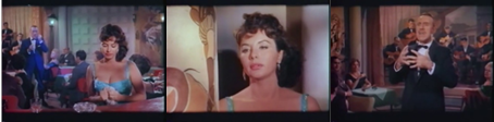 El modelo del cabaret impera en La diosa impura y es precisamente en este espacio en el que se desarrollan cuatro de los cinco números musicales del film, durante el primer tercio de la película. En México, la protagonista se encuentra alternando en un distinguido cabaret cuando la cantante israelí Aliza Kashi interpreta la bossa nova titulada Amor que acabou12. La canción es un manifiesto que funda el estatuto del personaje de Laura, quien se halla herida por un desengaño amoroso y utiliza fríamente su exuberante aspecto físico para sobrevivir a las inclemencias de su acontecer. Allí conocerá a Pedro Molina Vargas (Víctor Junco), un excéntrico artista que inmediatamente quedará prendado de ella.