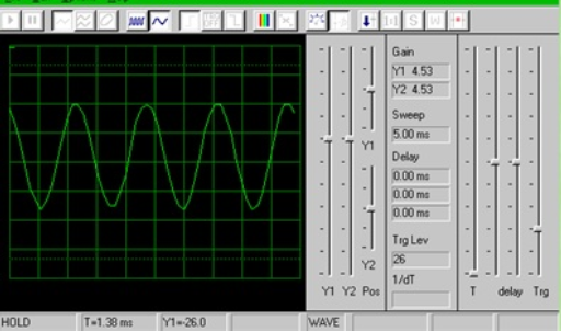La selección de la amplitud de la onda puede ser en tres tipos: sinodal, cuadrática y triangular. Debemos mencionar que este programa posibilita diferentes escenarios y puede ser empleado para la demostración práctica del comportamiento de las ondas dependiendo de su frecuencia y amplitud. Sin embargo, para la valoración de las ondas, es necesario contar con un osciloscopio, instrumento que permite la medición de las señales eléctricas y su variación de la tensión en el tiempo; muestra en pantalla los valores obtenidos en forma de coordenadas, en las que el eje “X” representa el tiempo y “Y”, las tensiones (Amalfa, 2006).