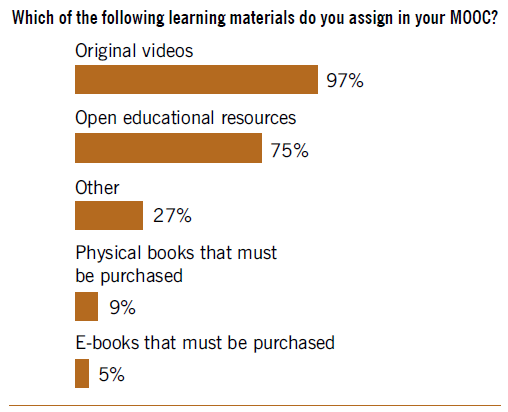 Segundo os resultados de pesquisa survey publicados por Kolowich (2013), 75% dos conteúdos disponibilizados em MOOC são REA (figura 1).