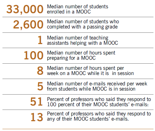 Diante disso, tanto a educação a distância quanto educação aberta por meio de MOOC tem sido uma alternativa para quem pretende realizar cursos com direito à rentabilização em créditos ou melhores condições de trabalho. Se as instituições universitárias tem visto nisso tudo uma série de alternativas para ampliar o número de estudantes, é notório que isso implica reprogramar e avaliar a vida profissional dos professores e gestores.