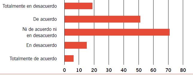 En cuanto a la pregunta de si se considera que el uso de herramientas colaborativas como Prezy, CmapTools, Google Docs, OneDrive, entre otras, pueden ayudar al aprendizaje del inglés, la mayoría se inclinó por responder que no están de acuerdo ni en desacuerdo (ver gráfica 2).
