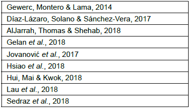 Los criterios de exclusión fueron: textos académicos que no fueran resultado de investigación empírica -en otra palabras, se excluyeron ensayos científicos y reseñas de textos académicos-; y libros, capítulos de libros, memorias de congreso y revisiones sistemáticas.