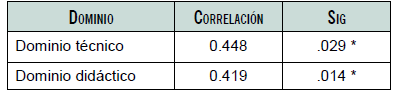 Por último, analizamos si existía relación entre los diferentes dominios estudiados y la frecuencia de utilización del AVA; para ello, aplicamos el coeficiente de correlación de Pearson y obtuvimos los valores mostrados en la tabla 7.